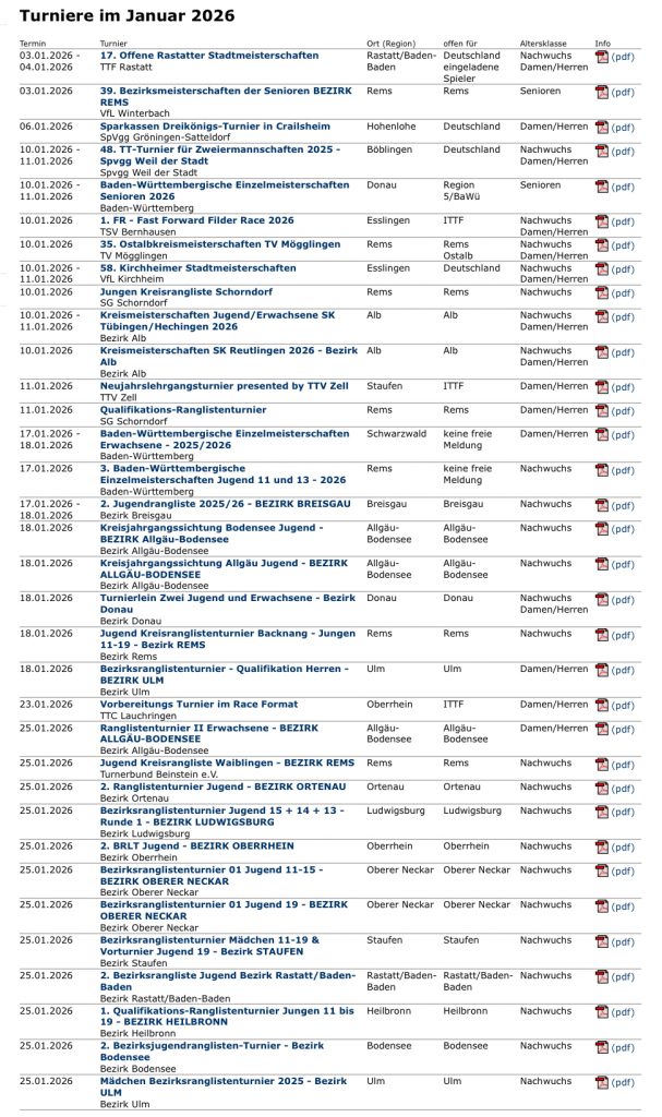 Die Turniersaison läuft! Auf der Seite von TTBW findet ihr alle Turniere die im Januar statt finden.