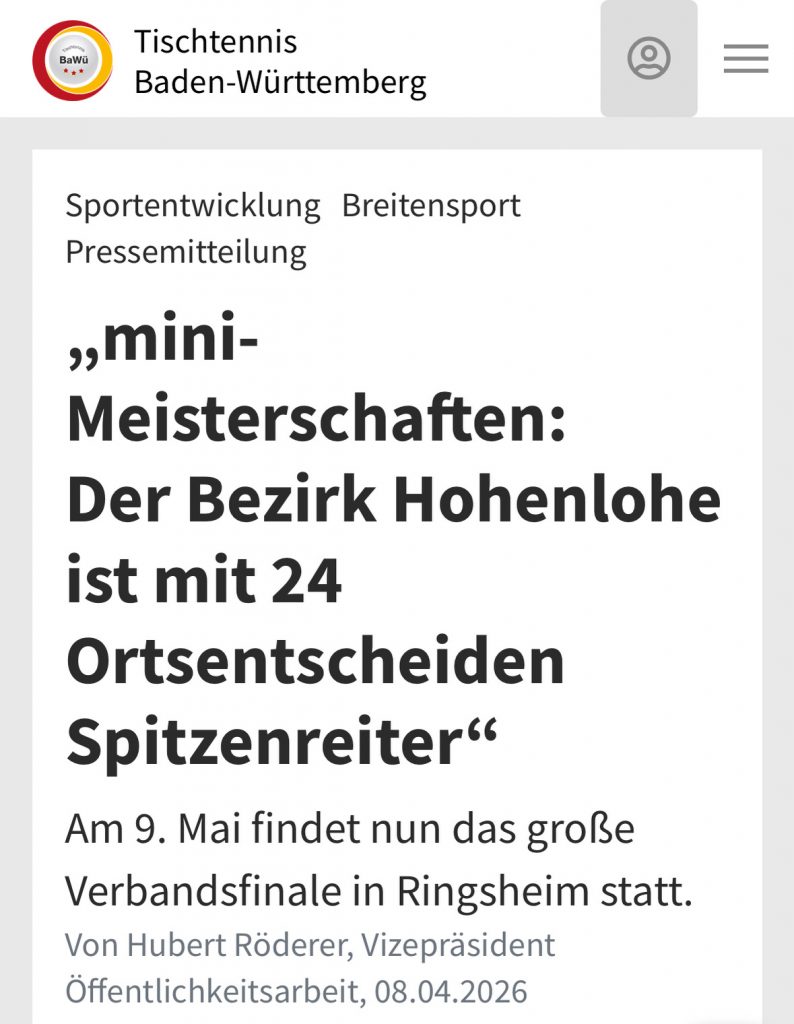 Wir freuen uns, dass wir mal wieder an der Spitze von TTBW stehen – Dieses Mal bei der Anzahl der mini-Meisterschaften, die ausgetragen wurden. Genau 24 Ortsentscheide, darunter auch unsere Partnervereine TTC Gnadental und FC Langenburg, wurden in der Saison 2025/26 ausgetragen.