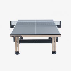 Man mag sich an dieser Stelle verwundert die Augen reiben. Ja – mit diesem TT-Tisch dürfen offizielle Wettkämpfe gespielt werden. Wir lernen: Nicht nur grün und blau sind als offizielle Farben für Oberflächen zugelassen, sondern seit dem Cornilleau Competition 850 Wood ITTF auch die Wettkampffarbe grau.