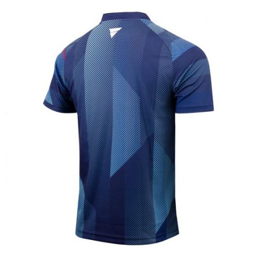 Aufwendiges Premium-Shirt aus atmungsaktiver Sublimation-Mikrofaser im modernen Design. Der stylische Kragen und die exzellente Feuchtigkeitsregulierung sorgen dauerhaft für besten Tragekomfort. Der sportlich moderne Schnitt ist perfekt auf die tischtennisspezifischen Bewegungen ausgelegt.
